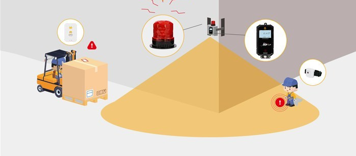 叉車作為一個(gè)大型貨物,運(yùn)輸機(jī)械,存在著較多的視覺盲區(qū),很容易出現(xiàn)碰撞等安全事故,輕則損毀財(cái)務(wù),重則傷人性命,因此叉車防撞工作勢在必行。
