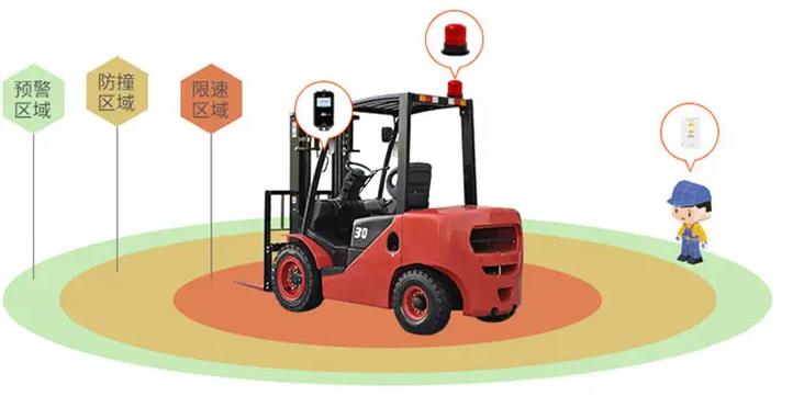 電子叉車防撞?系統(tǒng)是警告叉車司機(jī)當(dāng)它檢測(cè)到在5-20米的范圍內(nèi)設(shè)定其他車輛的解決方案。