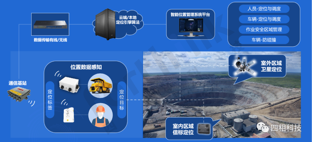 露天礦山開采環(huán)境復(fù)雜,作業(yè)危險(xiǎn)系數(shù)高,安全生產(chǎn)隱患多。建設(shè)露天礦山人車定位系統(tǒng),可以幫助礦企實(shí)現(xiàn)對(duì)人車動(dòng)態(tài)目標(biāo)的實(shí)時(shí)精確管理,有效避免事故發(fā)生,保障作業(yè)人員人身安全,從而提升露天礦山的安全生產(chǎn)水平。四相科技以露天礦山安全生產(chǎn)為出發(fā)點(diǎn),基于U