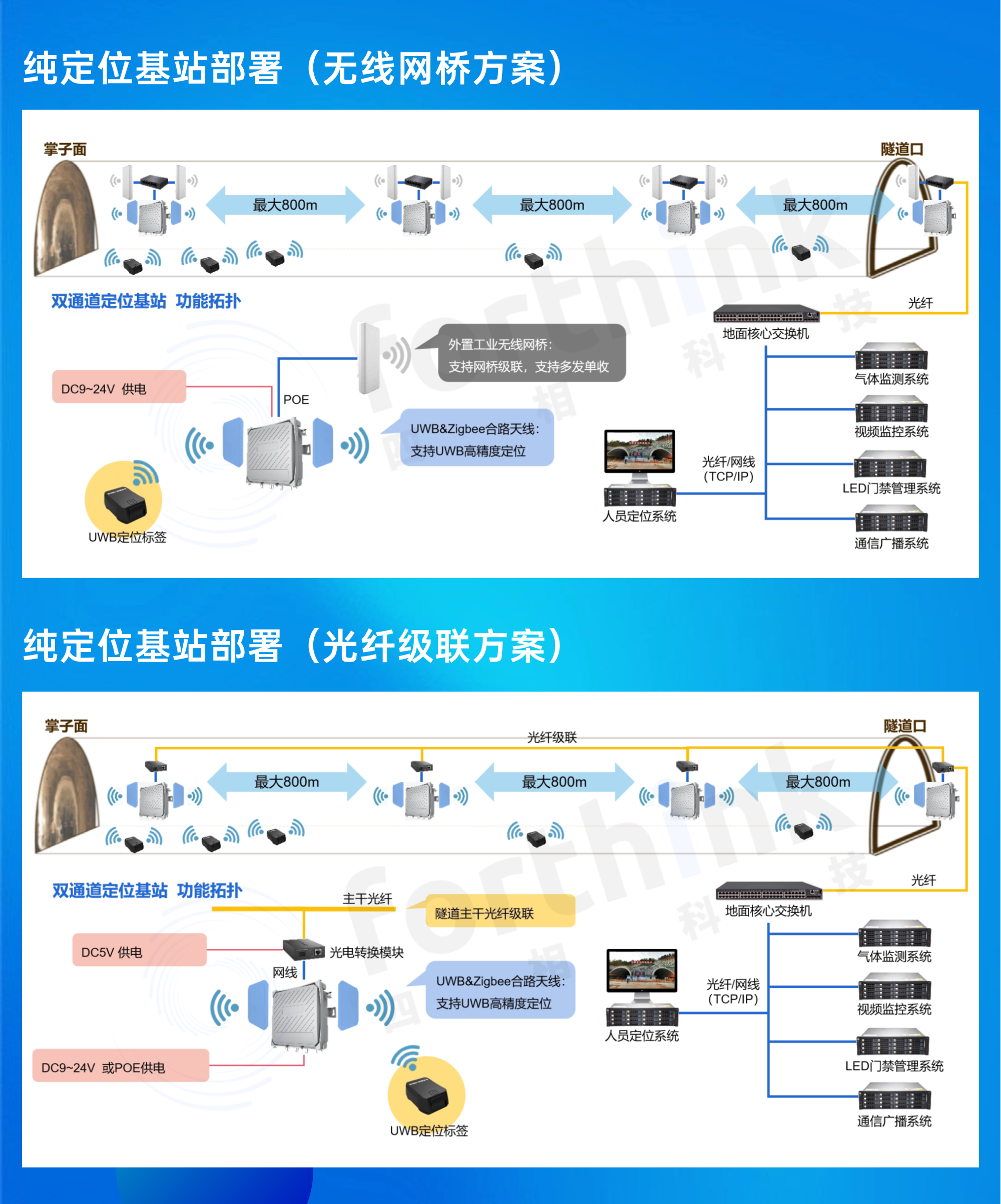 除了定位&通信&內(nèi)置網(wǎng)橋融合方案,還可提供無線網(wǎng)橋、光纖、以太網(wǎng)等多種網(wǎng)絡(luò)部署方式,適應(yīng)性強,部署簡單。