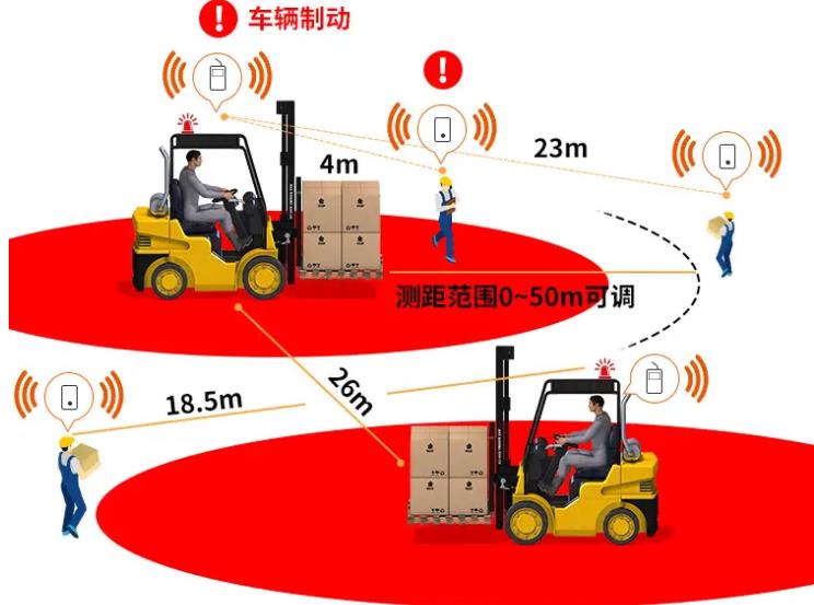 電子叉車防撞?系統(tǒng)是警告叉車司機(jī)當(dāng)它檢測(cè)到在5-20米的范圍內(nèi)設(shè)定其他車輛的解決方案。