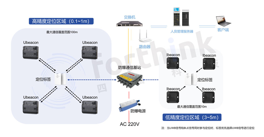 四相科技以UWB超寬帶定位技術(shù)+藍(lán)牙beacon技術(shù)為支撐,在化工復(fù)雜場(chǎng)景融合實(shí)現(xiàn)零維、一維、二維、三維多種定位方式,打造UBeacon+iBeacon高低精度一體化融合定位系統(tǒng)。 實(shí)際部署中,四相科技根據(jù)不同空間精度需求,因地制宜選擇合適的定位技術(shù),為企業(yè)提供位置信息服務(wù)